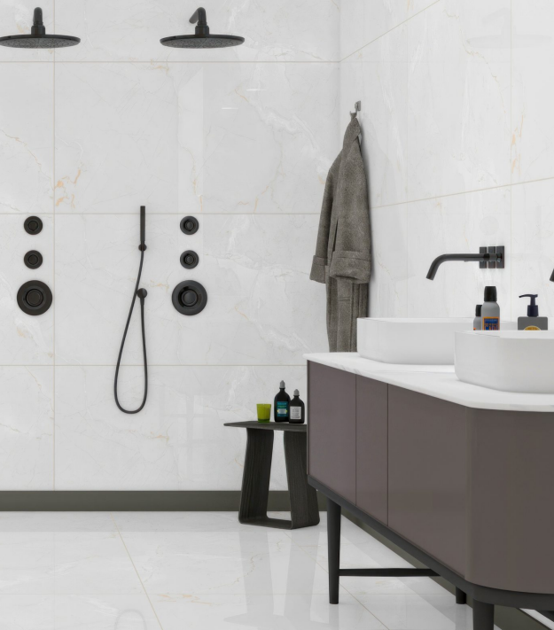 This tile is all about creating a clean and open feel. Its large 600x1200mm size is great for a modern bathroom because it means you have fewer grout lines to clean, giving the walls and floor a smooth, seamless look. It’s made from strong porcelain, so it’s perfect for wet areas. With three random patterns, it looks more like a real, expensive piece of natural marble.