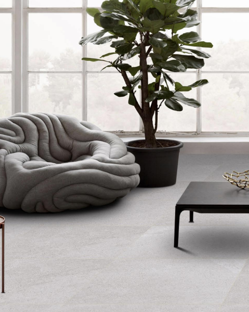 As seen in the image, the Alisiya Bianco tile helps to create a calm and sophisticated atmosphere. Its neutral color and very subtle pattern create the perfect quiet backdrop for any style of decoration. This tile is often a “full-body” porcelain, meaning the color and pattern go all the way through, which makes it extremely durable. The practical matte finish is an excellent choice for high-traffic floors where you need both style and long-lasting performance.