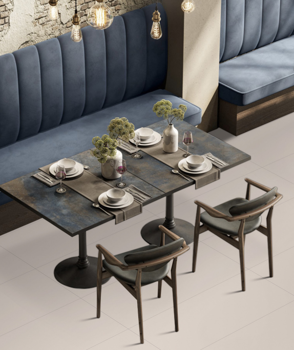 This tile is designed to look great and be incredibly tough. Its large 600x1200mm size is great for a big floor because it means you have fewer grout lines, creating a very clean and seamless look. Because it’s made from strong porcelain, it’s a perfect choice for a busy restaurant or a modern home, as it’s very durable and easy to keep clean. The simple design provides a perfect canvas for your furniture and decor.
