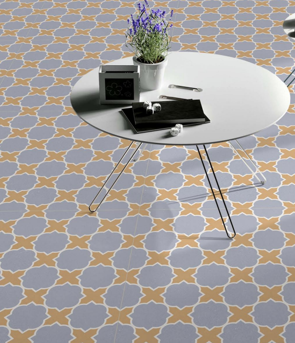 Get this tile to add a unique, artistic pattern to your living room floor. The pretty blue and yellow colors are cheerful and very stylish.