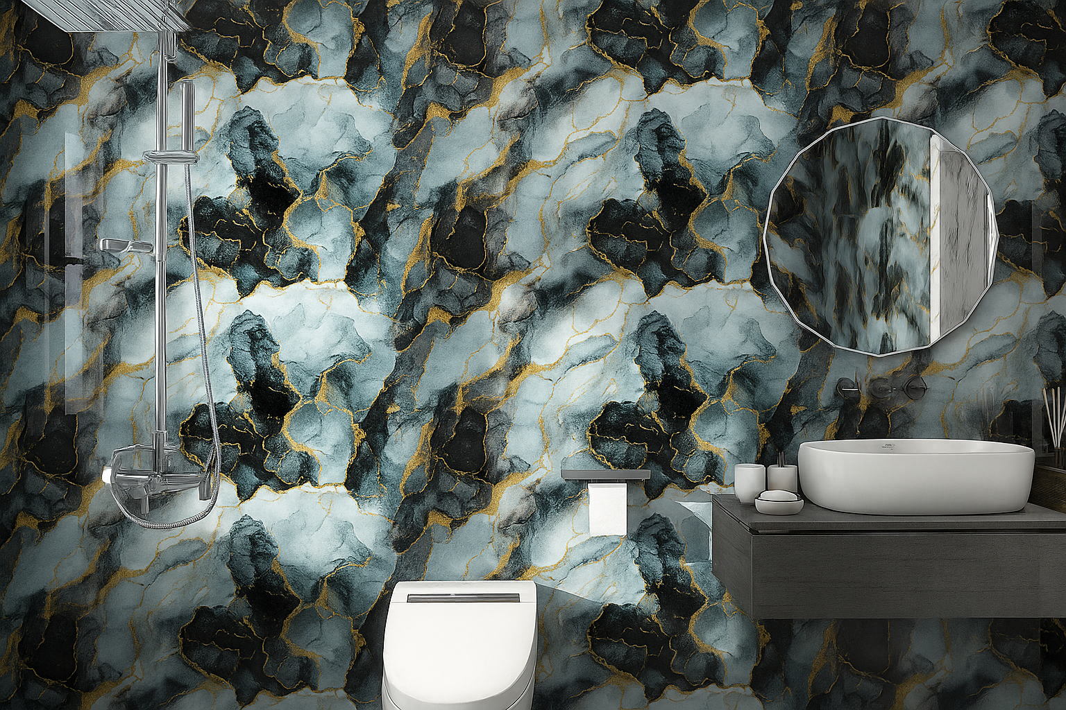 Elevate your interiors with our luxury bathroom tile, a stunning blend of elegance and performance. This glossy marble tile features a bold black and gold wall tile design that adds sophistication to any space. Made from premium porcelain, it’s the perfect modern tile for bathroom walls, offering a sleek, high-end finish without the maintenance of real marble. Designed for contemporary living, these designer tiles from India are not only stylish but also highly functional—easy to clean, waterproof, and built to last.