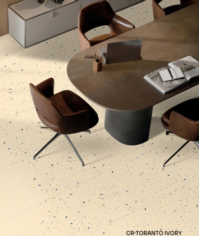 The CR Toranto Ivory tile brings a cheerful yet elegant character to any room. Its large 600x1200mm size gives the traditional terrazzo pattern a clean and modern look with fewer grout lines. The special Carving finish adds a tactile quality that sets it apart from standard tiles, making it interesting to both see and touch. It’s a durable and impressive choice for floors and walls in creative homes and businesses.