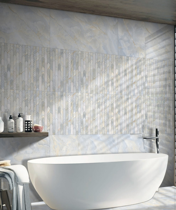 As seen in the image, the Crystal 001 series allows you to create a high-end, custom designer look with ease. The smooth base tile provides a clean, expansive look on the walls, while the 3D decor tile can be used to create a stunning feature wall that adds depth and character. The collection’s soft, natural appearance and gentle matte finish create a tranquil atmosphere that is perfect for relaxing spaces.