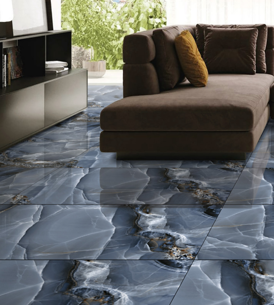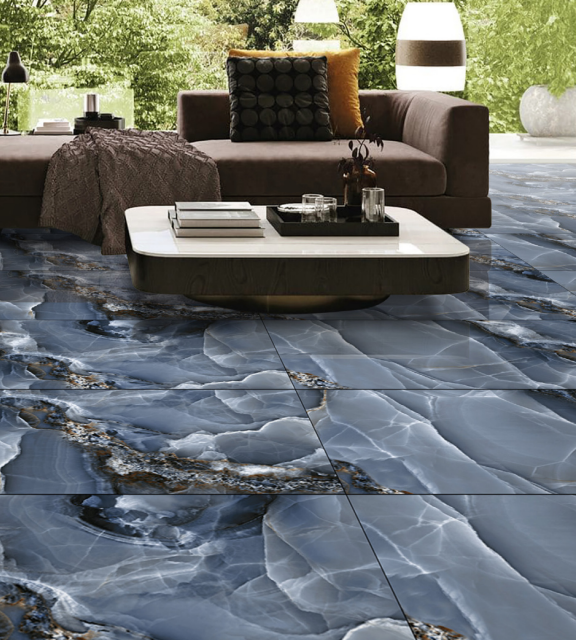 This tile is designed to make a very bold and high-end statement. Its large 600x1200mm size gives the living room floor a very grand and seamless look with hardly any grout lines. Because it’s made from strong porcelain, it’s a great choice that combines this incredible look with a tough, easy-to-clean surface. With four random patterns, it looks like a huge, continuous slab of a rare and exotic stone.