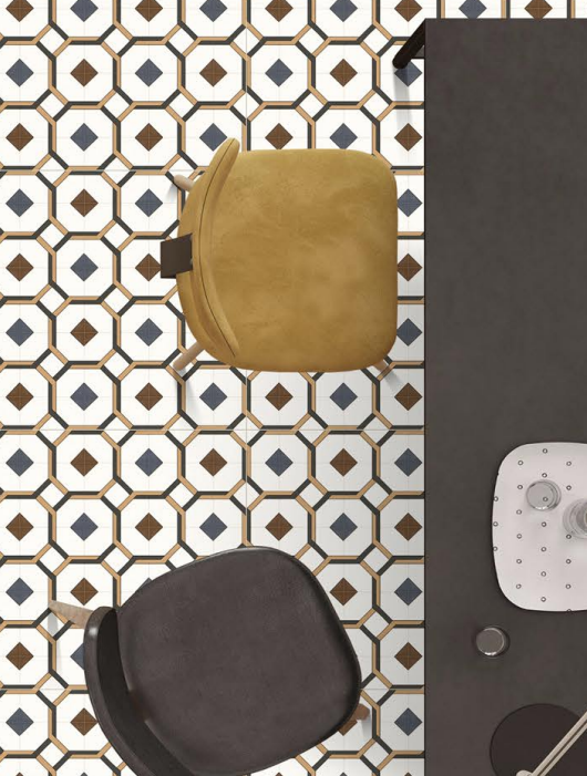 Get this tile if you love classic, geometric patterns that are always in style. The rich blue and brown colors are very sophisticated and elegant.