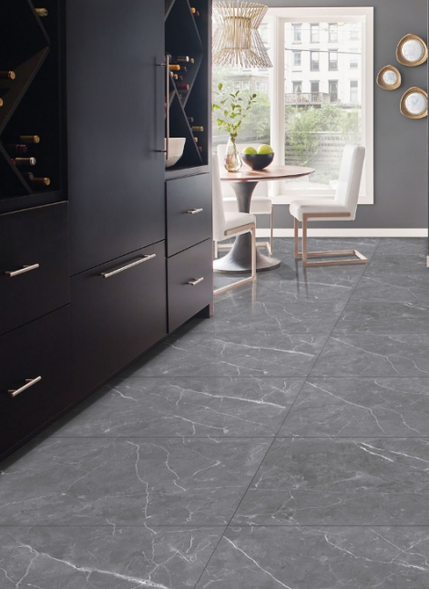 Choose this tile for its cool, modern, and sophisticated grey marble style. It gives you the high-end look of stone in a very strong and durable porcelain.