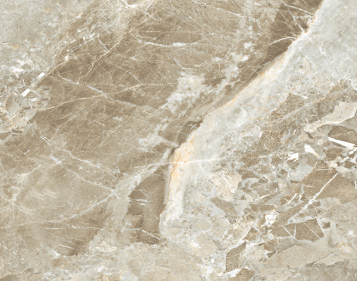 The Infinia Carlose Beige tile has a rich, earthy beige and taupe marble look. It features a dramatic pattern with large, cloudy patches and bold, crackled veins.