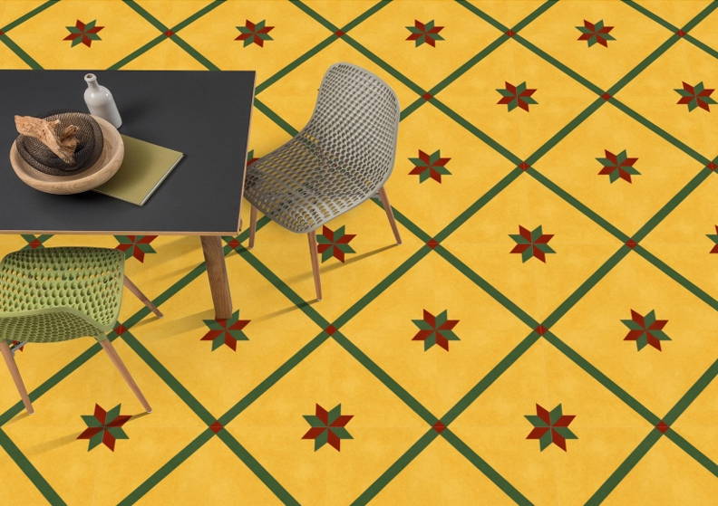 MC-2102 from the Moroccan Plain Series brings traditional artistry to modern interiors with its warm mustard yellow base and intersecting green diagonal bands, accented by red corner details. When laid together, the tiles form a beautiful star pattern that adds cultural depth and a vibrant rhythm to floors, ideal for cafes, courtyards, dining areas, and more. Crafted in 300×300 mm size, it evokes the charm of hand-crafted Moroccan decor while ensuring easy maintenance and long-lasting durability.