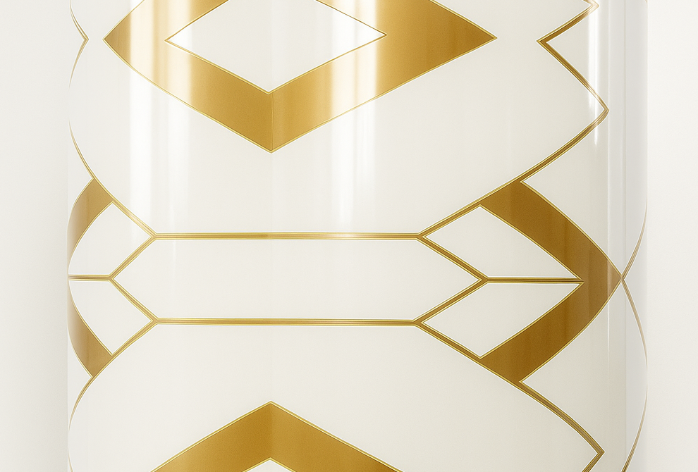 The highlight of Model-6263 is its digitally printed geometric pattern in gold, which features repeated diamond motifs aligned symmetrically across a glossy white base. This design reflects luxury and is inspired by minimalist art deco styles, making it a perfect fit for high-end homes, hospitality lounges, designer boutiques, or stylish office interiors. Its high-definition printing ensures long-lasting vibrancy without fading, even after years of use.