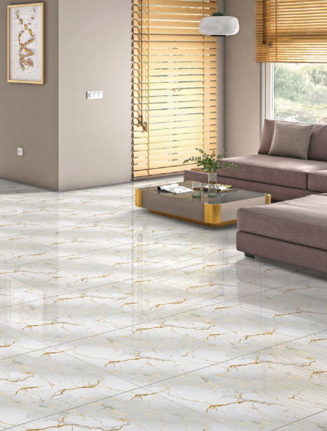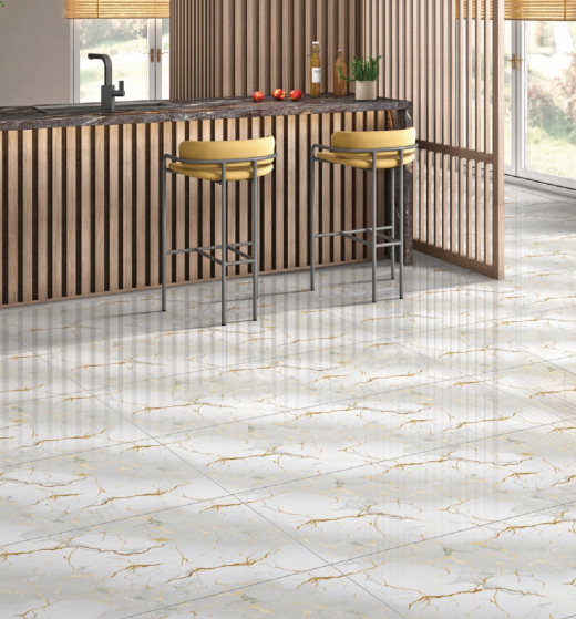 Choose this tile for its bright, clean, and very elegant look. The fine golden veins add a touch of luxury without overwhelming the space.